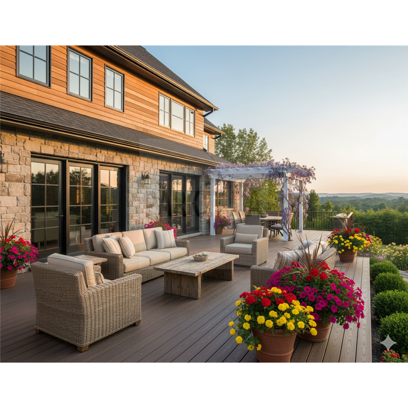 С помощью этой доски можно создать уютную террасу, отделать летнюю беседку или территорию вокруг бассейна.